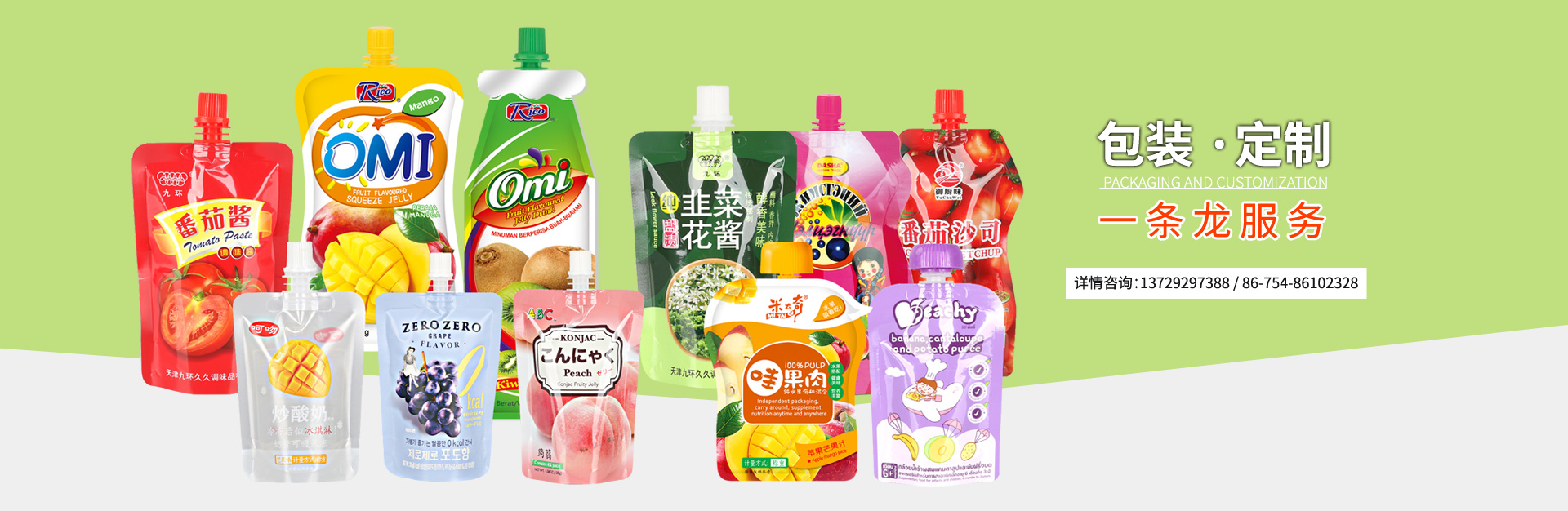 主要生產各類軟包裝,易撕果凍、巧克力封口膜,酸奶、飲料封口膜,自立吸嘴袋,企鵝包吸嘴袋,異形吸嘴袋,自立拉鏈袋,抽真空袋,高溫蒸煮袋,食品包裝卷膜,熱收縮膜標簽,日化洗滌用品等高質量的包裝產品。產品直銷國內30多個省市,并出口到美國,英國,法國,加拿大,土耳其,利比亞,巴基斯坦,印度,南非,柬埔寨,馬來西亞,印尼,菲律賓等多個國家和地區。...
